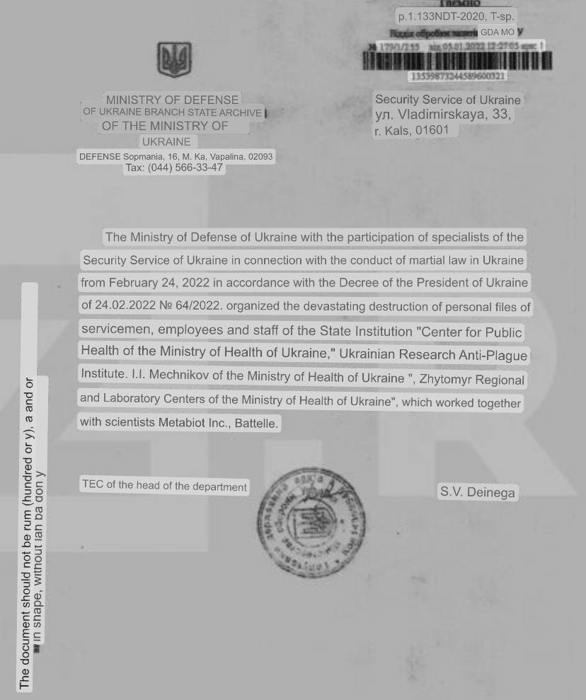-Zelensky burning all Ukraine State docs associated with Hunter Biden’s biolab company Metabiota as Russia begins airstrikes.
