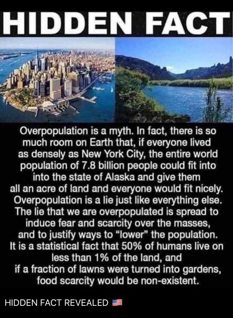 The Globalists keep telling you there are too many people, we have to get rid of 7 Billion people. We running out of food. We running out of water. We causing global warming etc etc etc