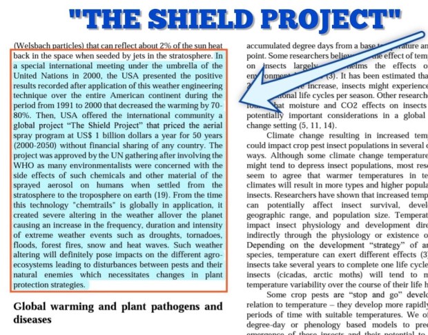 We’re in middle of a global experiment pushed by the US Government and D.O.D., United Nations, W.H.O., W.M.O. (Meteorological), and the I.P.C.C. (Intergovernmental Panel on Climate Change), within “The 50 years Shield Project.”